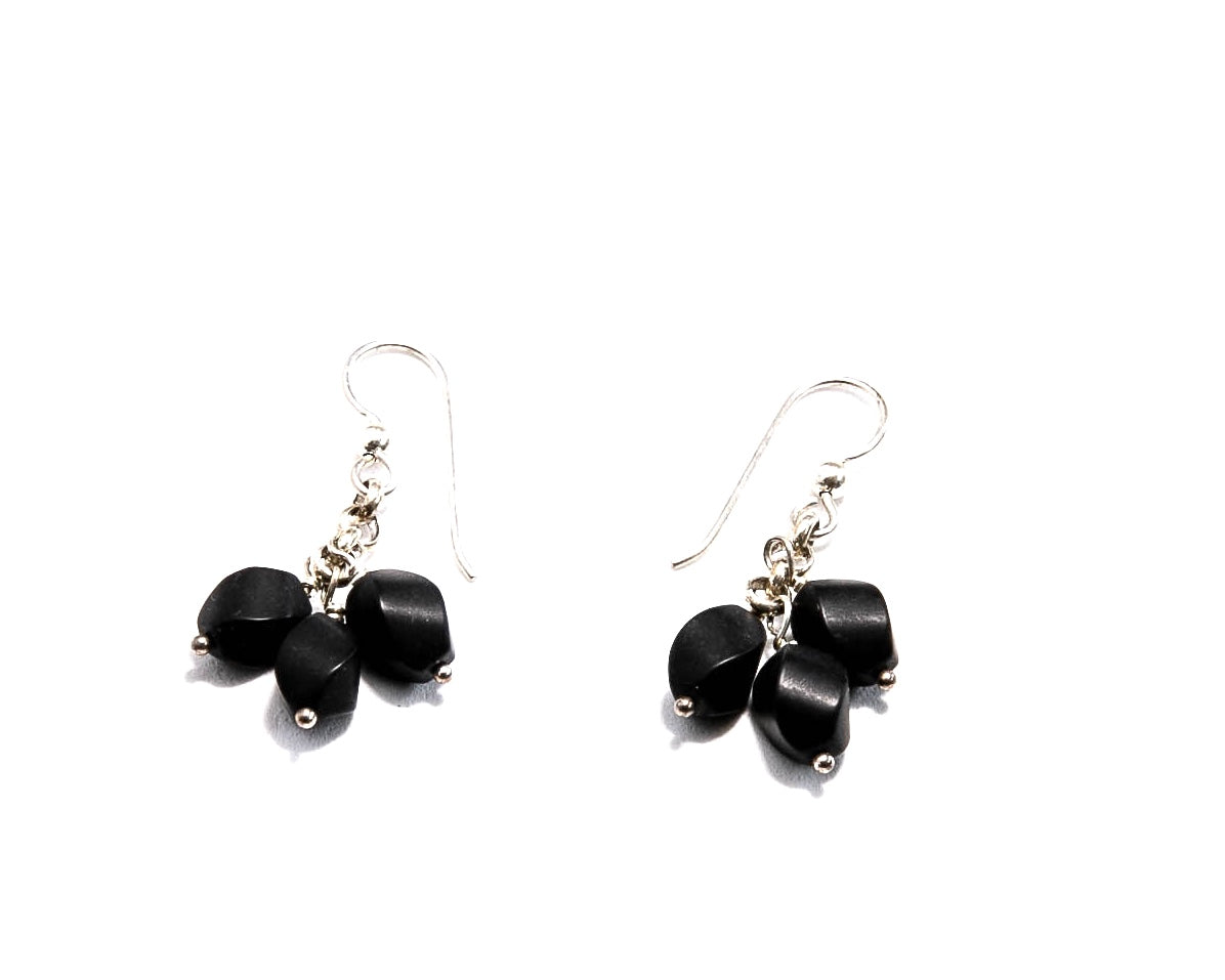 These cute onyx earrings are great for every day. The matte finish allows the faceted shape to really shine. They have a sterling silver ear wire.