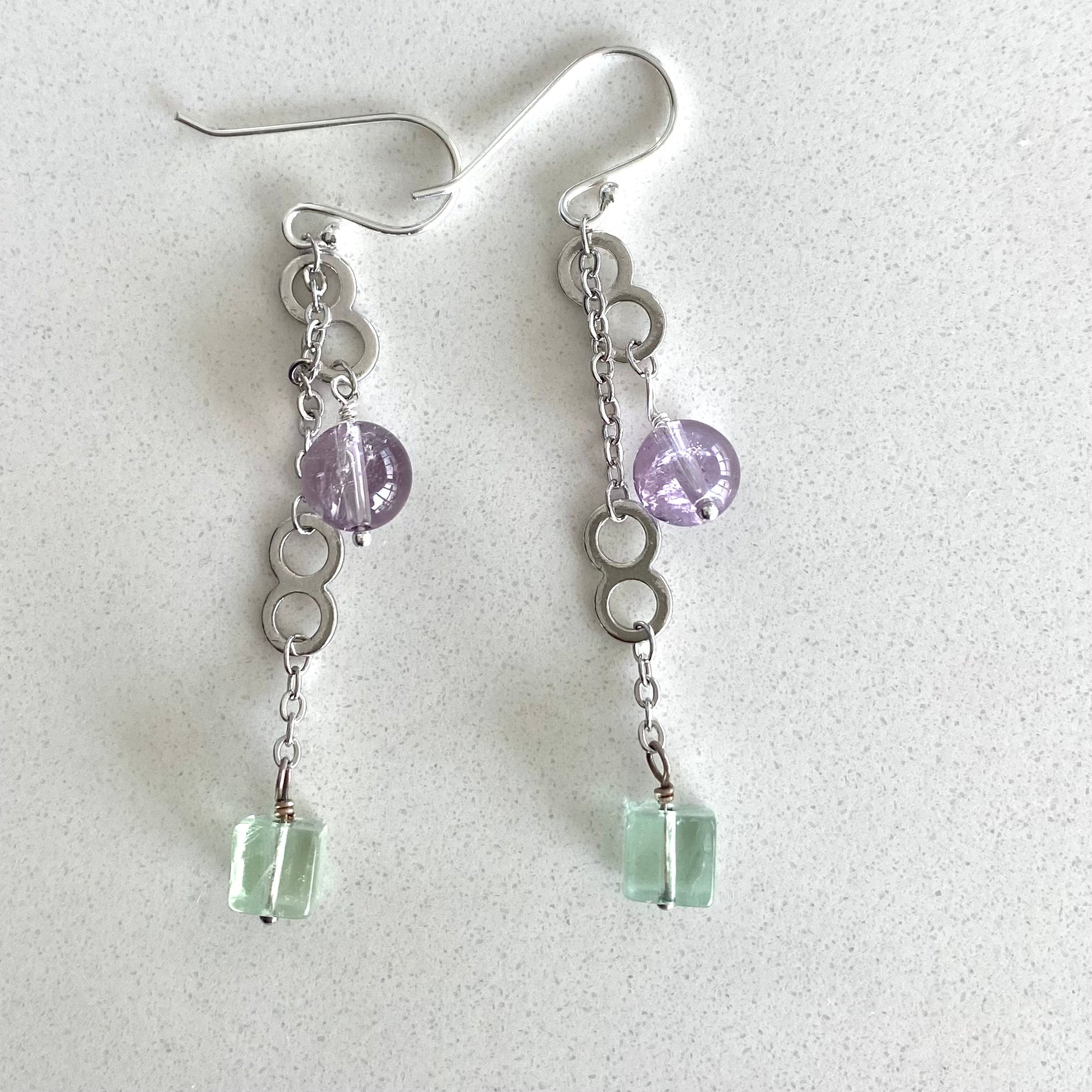 Rock a lovely lavender and mint color combo that will complement any outfit! These earrings can stand alone or pair perfectly with a matching necklace. (N0647)