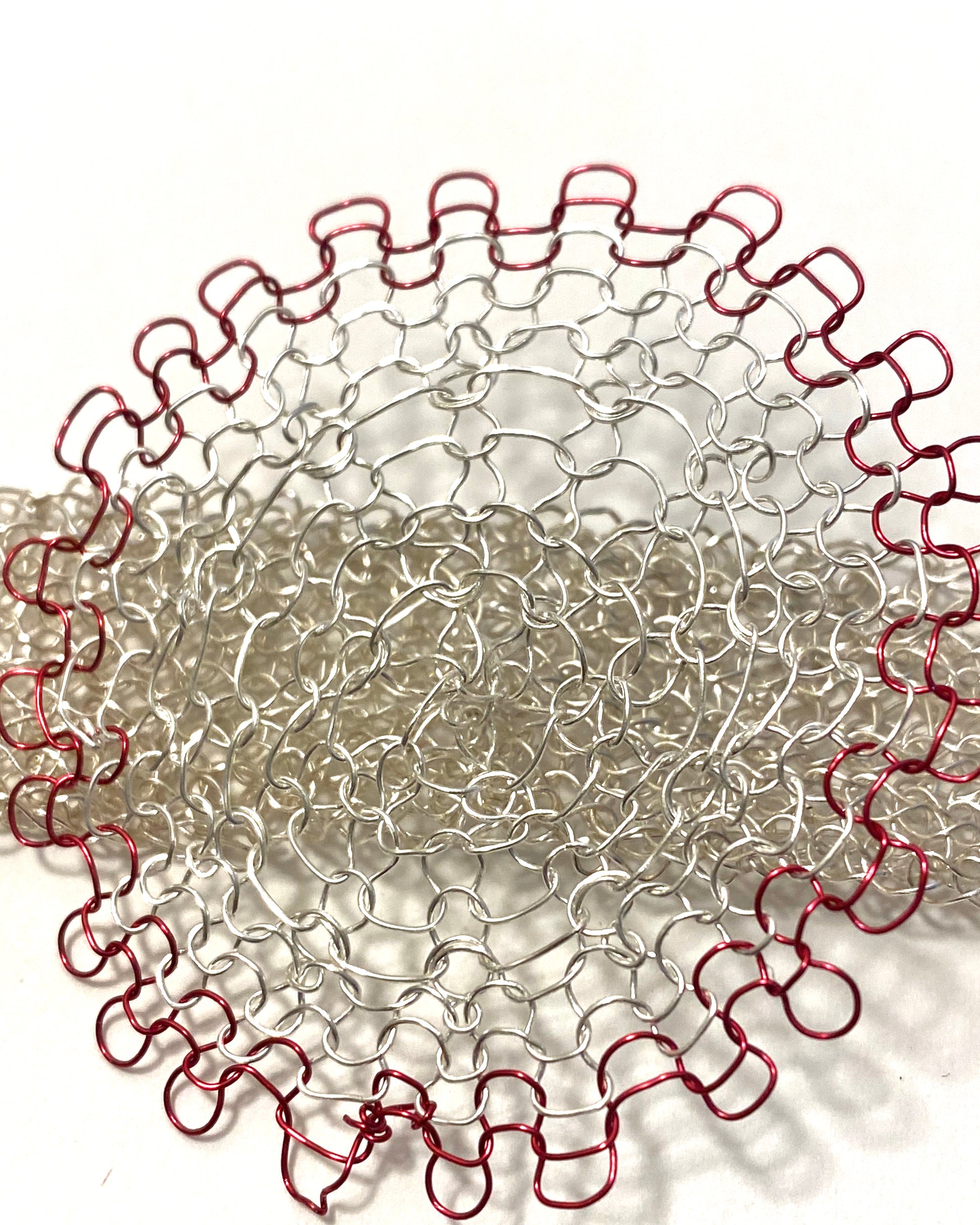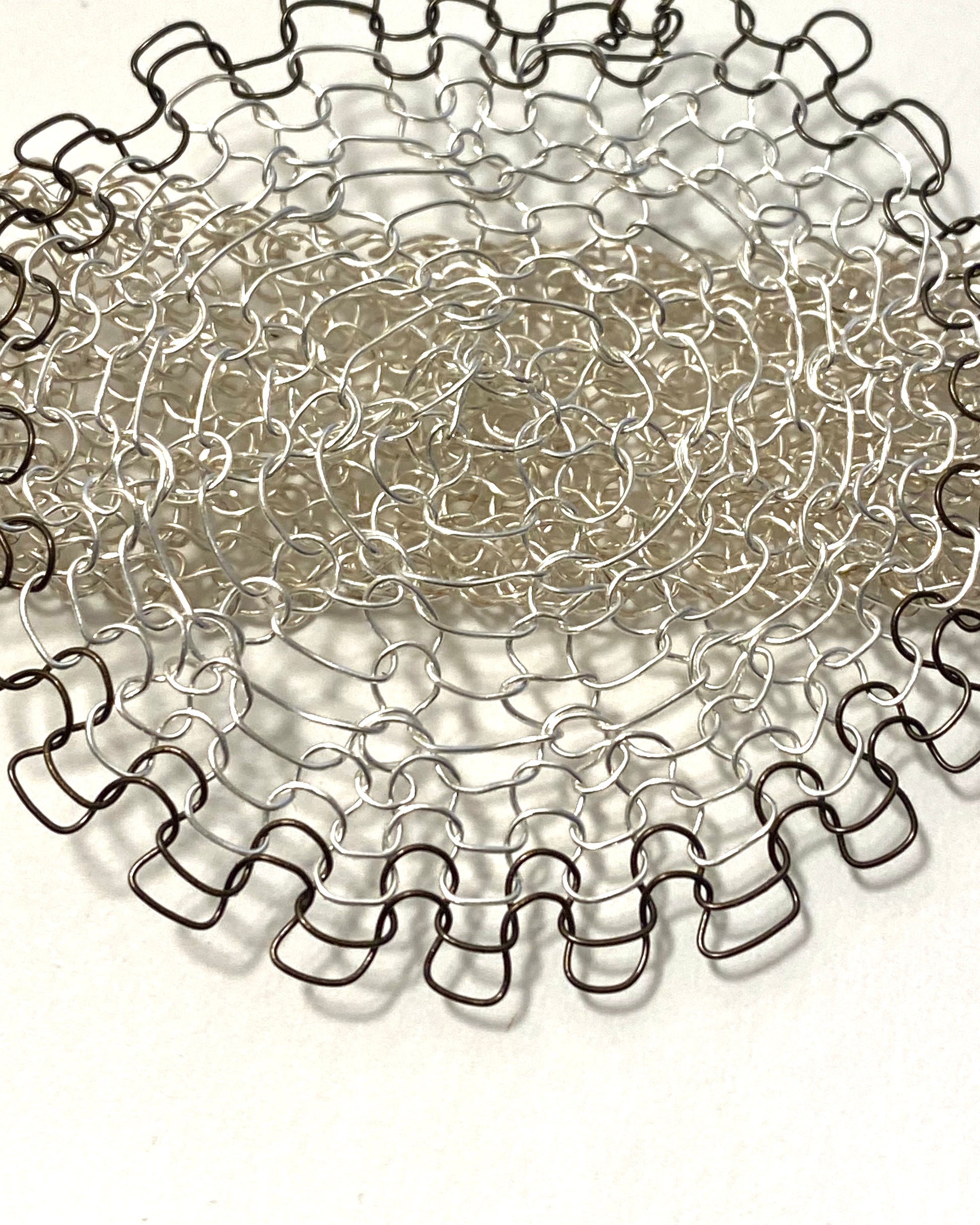 99.9% Fine Silver consists of 99.9% silver and .1% of another metal. This makes it the purest silver you can have. It differs from 92.5% Sterling Silver which is made of 92.5% silver, 7% copper and .5% of another metal. 99.9% Fine Silver is also softer and more malleable, enabling us to weave and shape the wire. The wire hardens as we work so that is stays in position when we are finished.