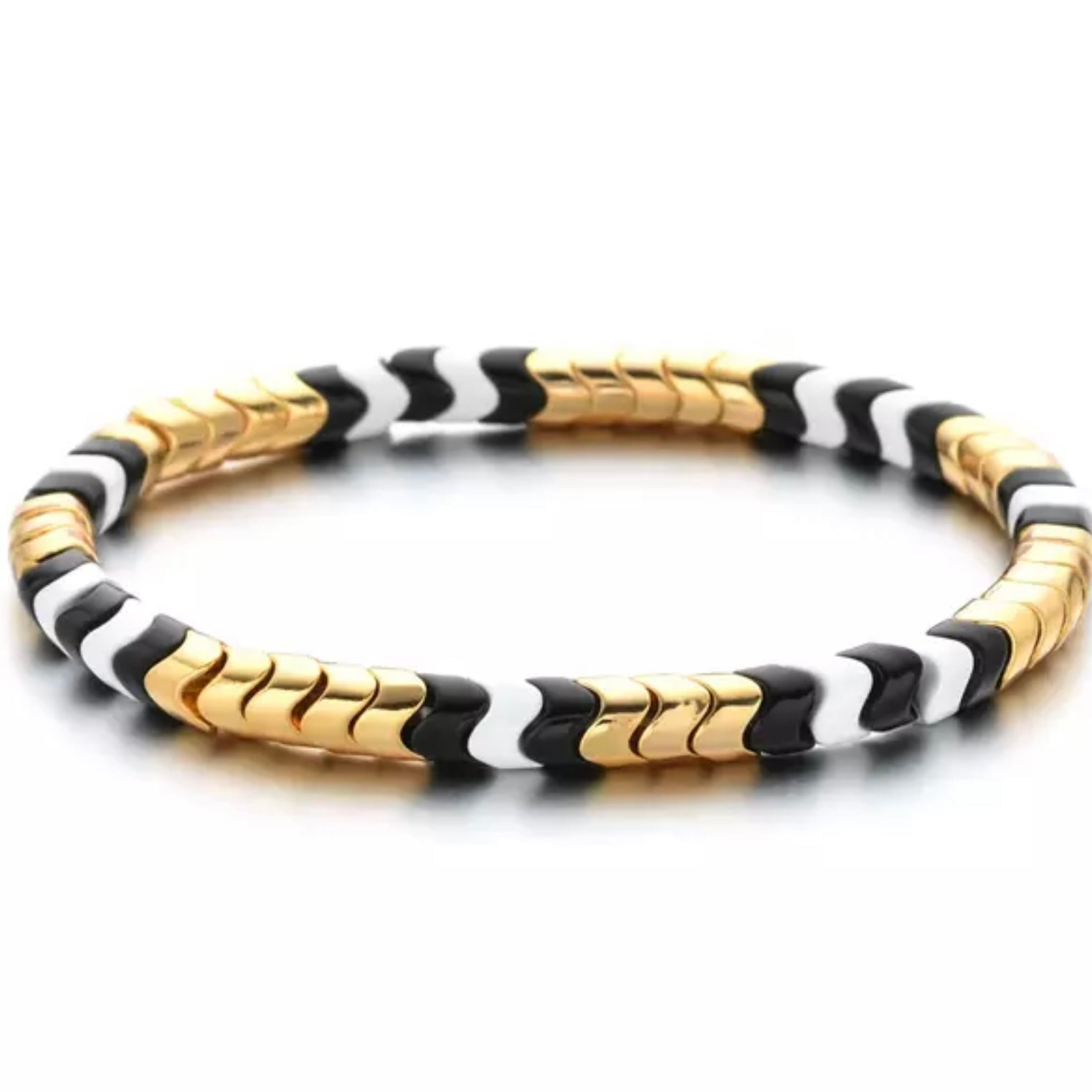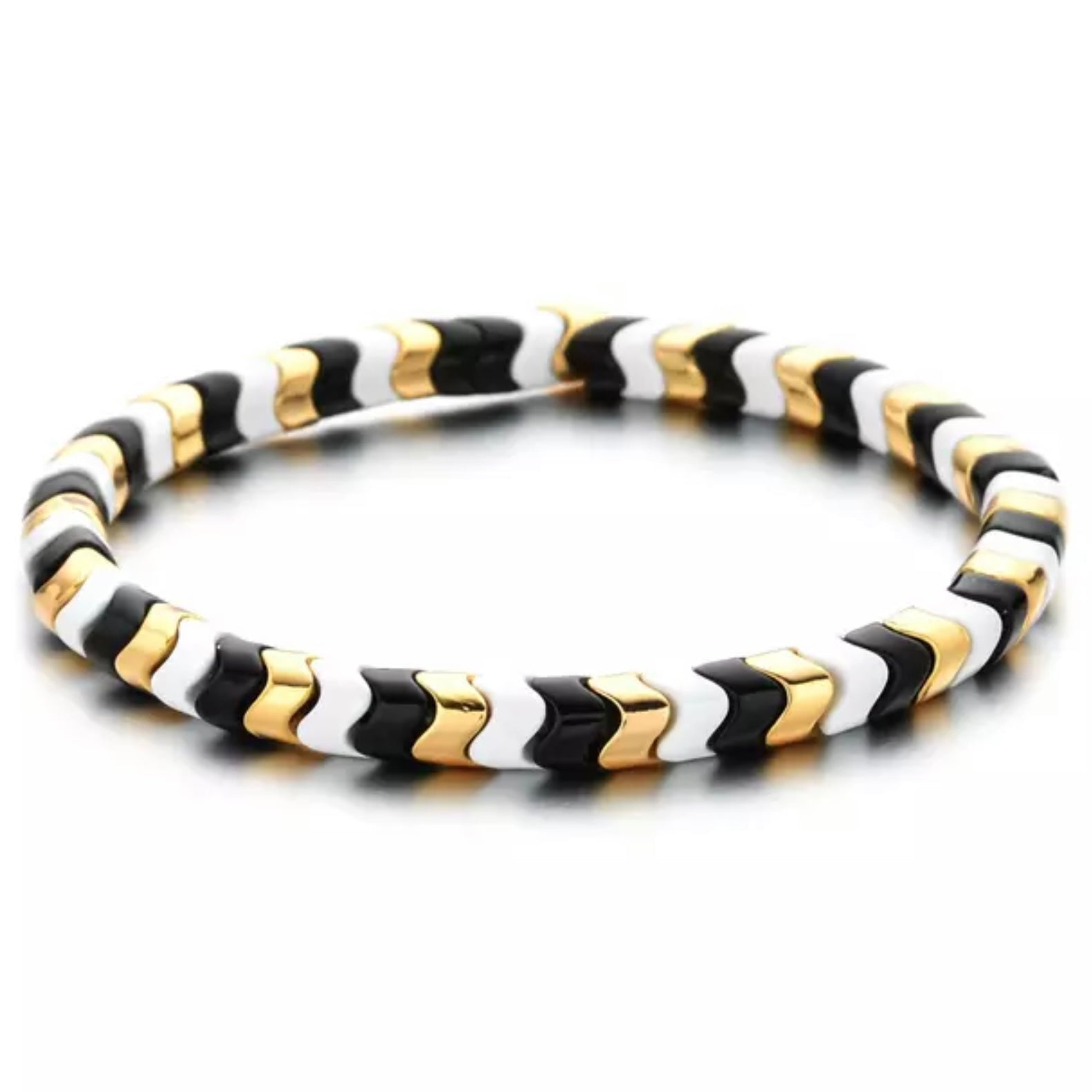 Gold Black and White Stretch Bracelet