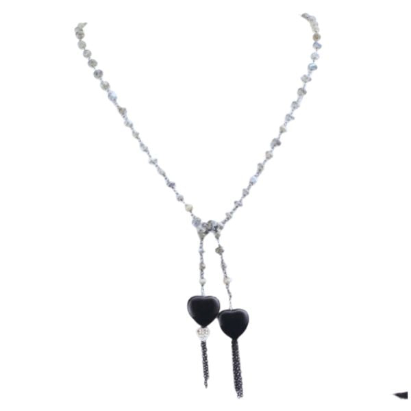 The magic of the labradorite stone coupled with the heart shaped onyx hearts will be sure to be a conversation starter.