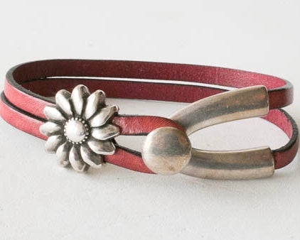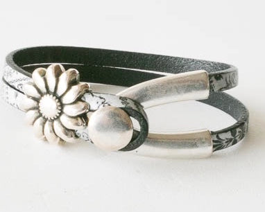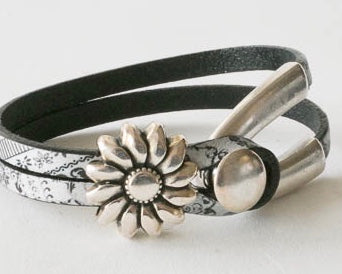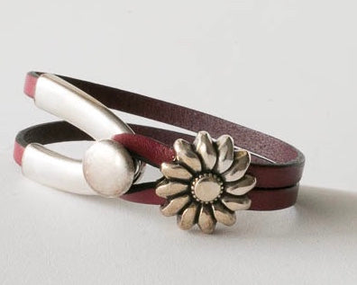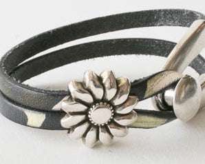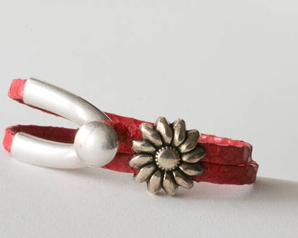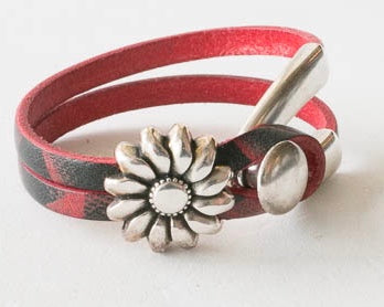 Who doesn't smile when the look at a daisy? Now you can wear one and look at a daisy every day. Available in red, turquoise, red/black, bronze, burgundy, blue, silver with black print, black with animal print.