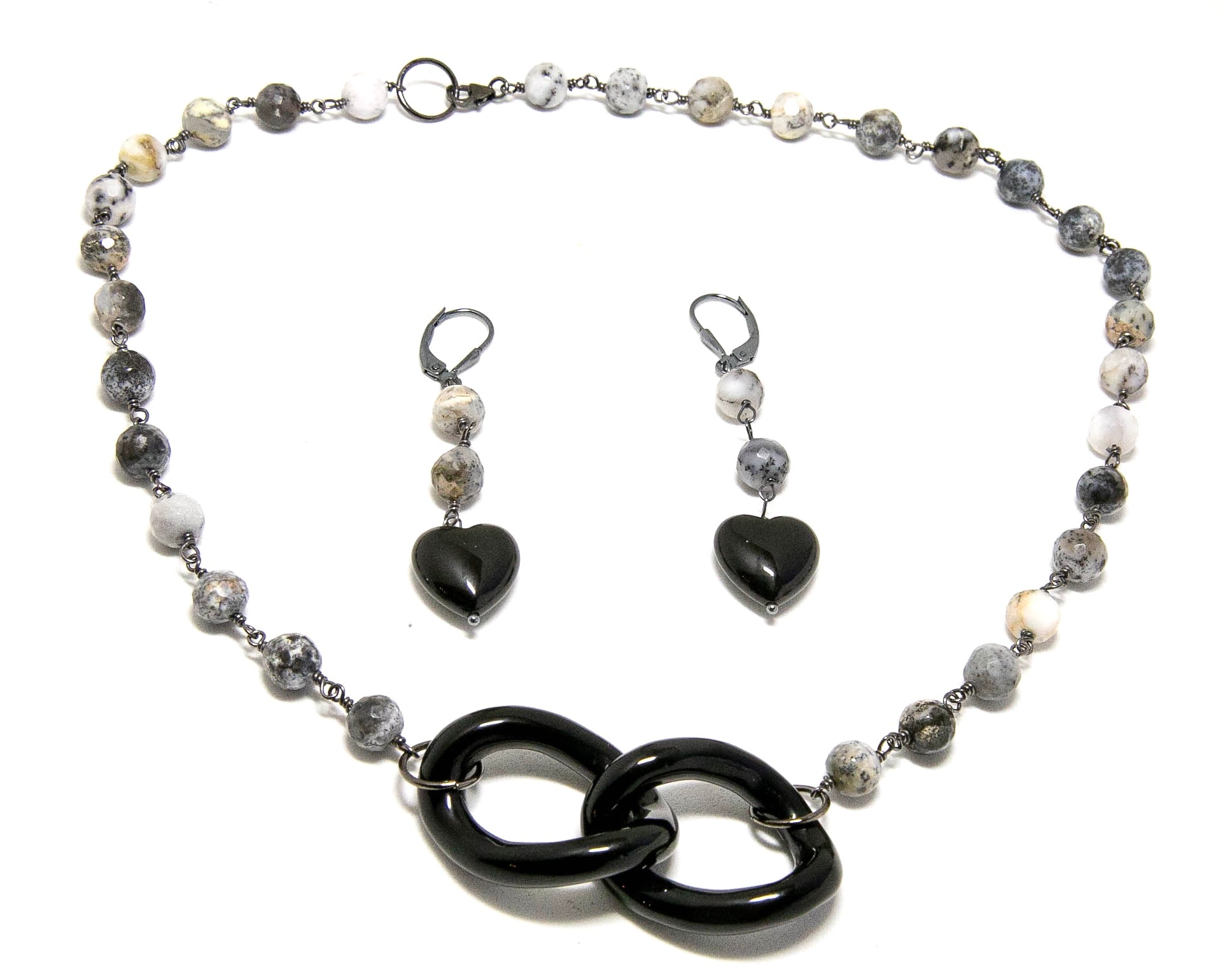 Love Knot Onyx and Agate Necklace