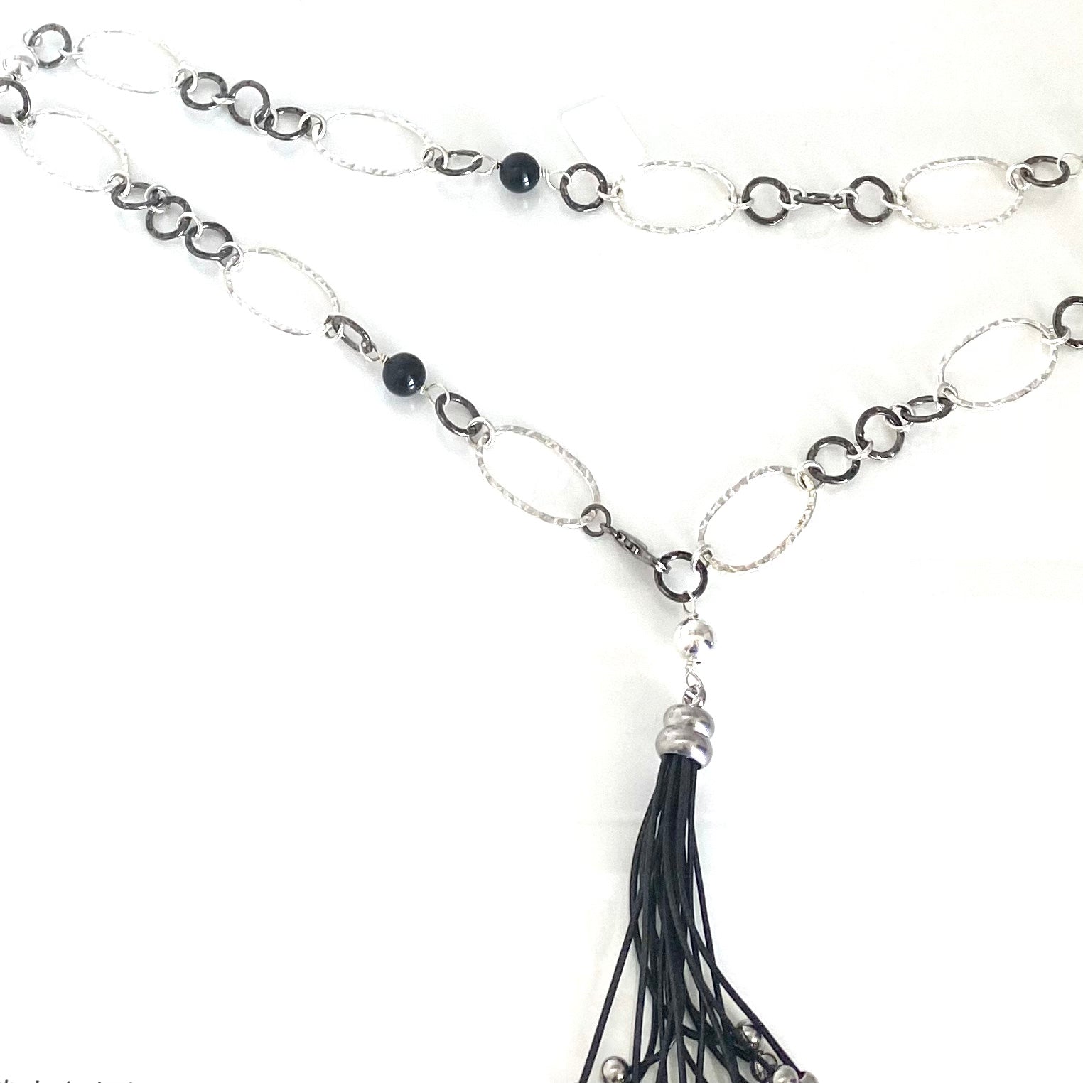 Onyx and Sterling. Silver Tassel Necklace