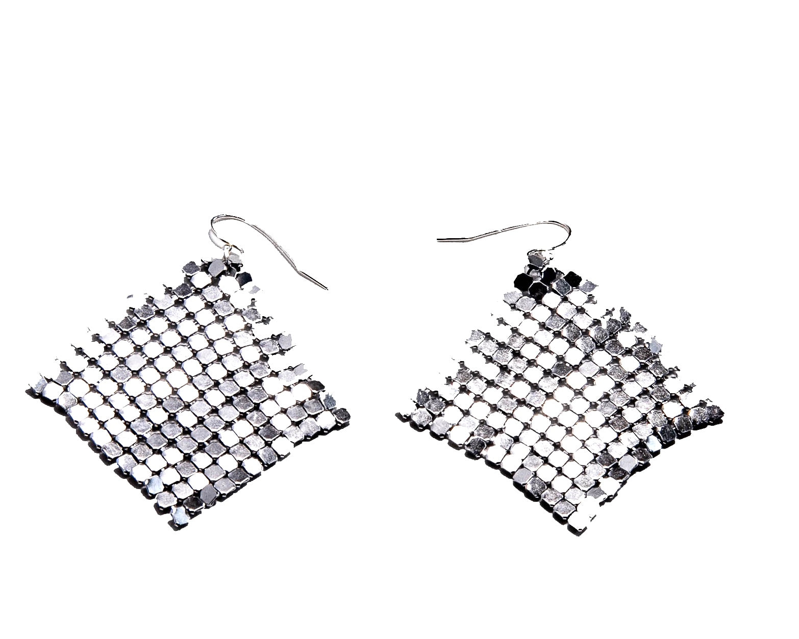 The supple square mesh earrings hang 2 inches long and flow with you as you move.