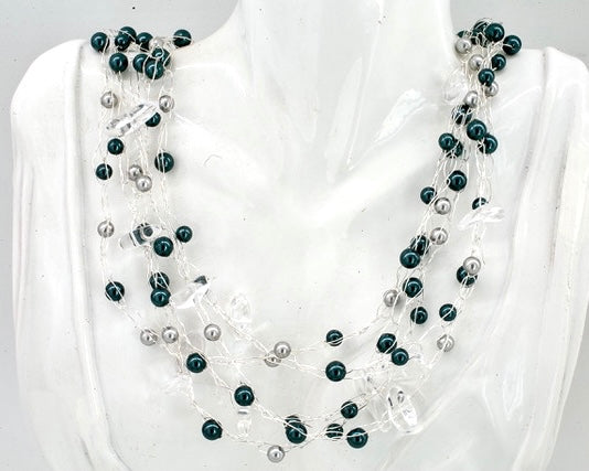 Teal and Grey Multi-strand Necklace
