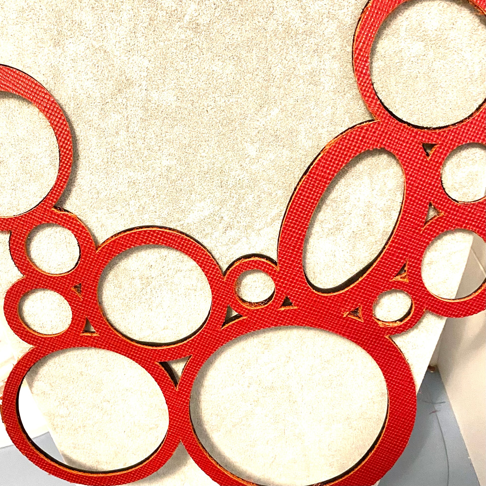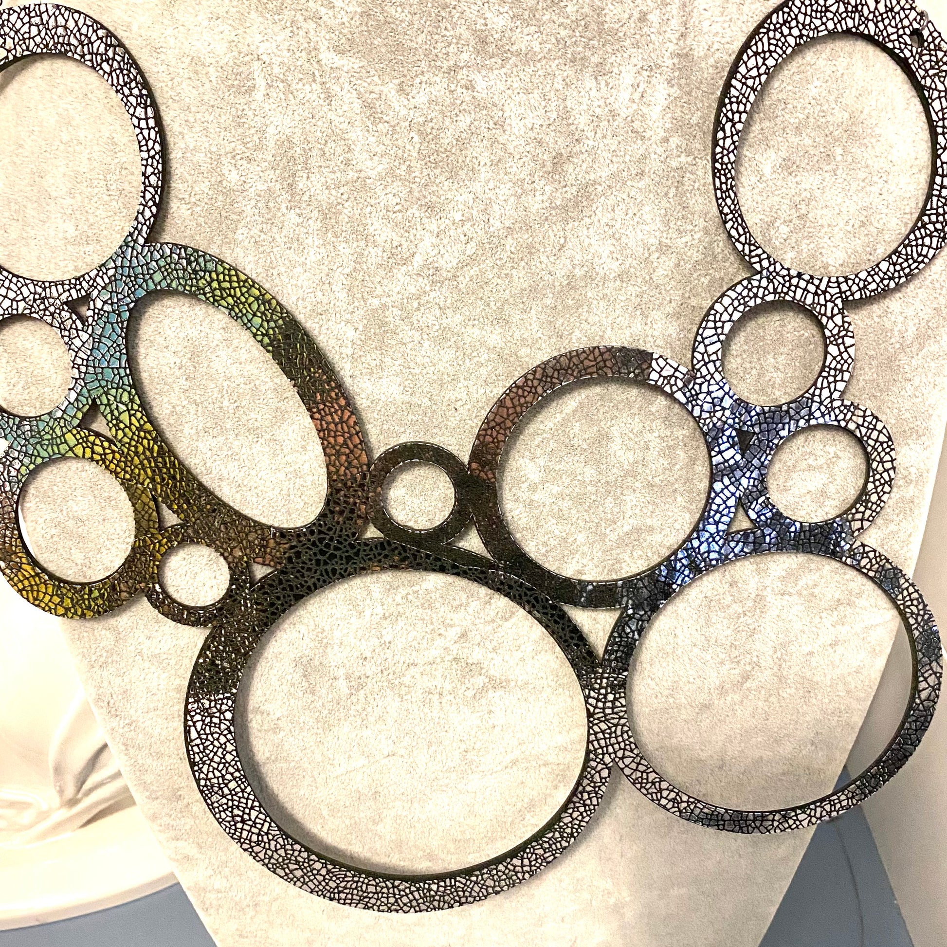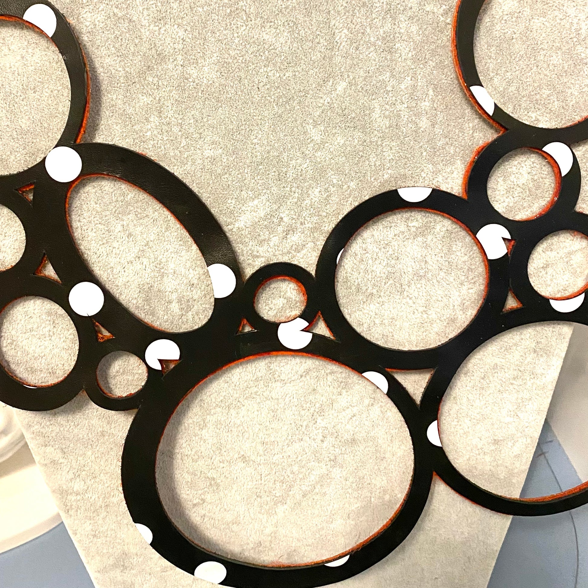 Make a bold statement with this one-of-a-kind, reversible Bubble Leather Necklace!