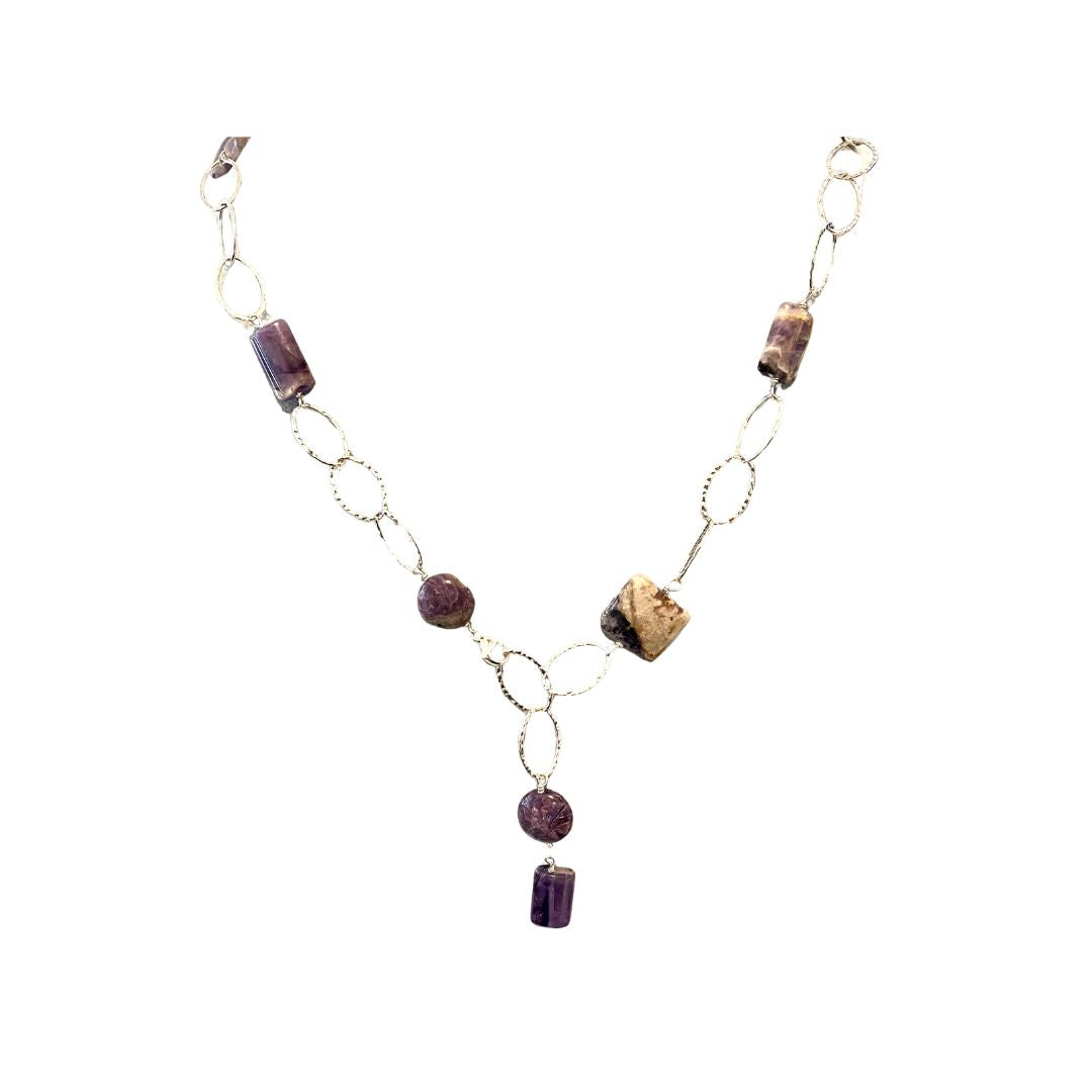 Add a touch of elegance to your outfit with our Dogtooth Amethyst and Sterling Silver Necklace. The beautiful marbling of purple and white in the dogwood amethyst stone makes it a versatile and neutral accessory that will complement any look. Made with high quality sterling silver, this necklace is sure to impress!