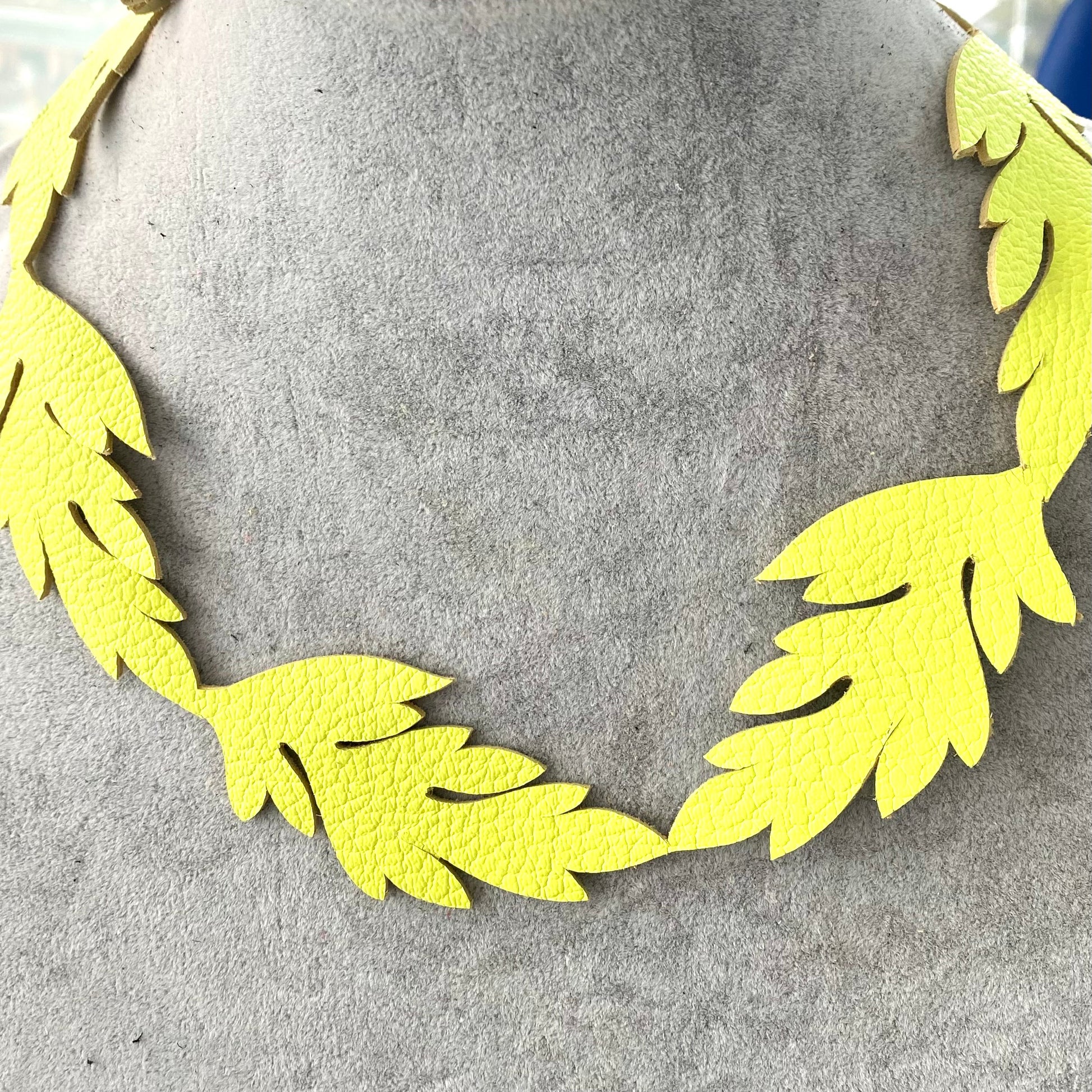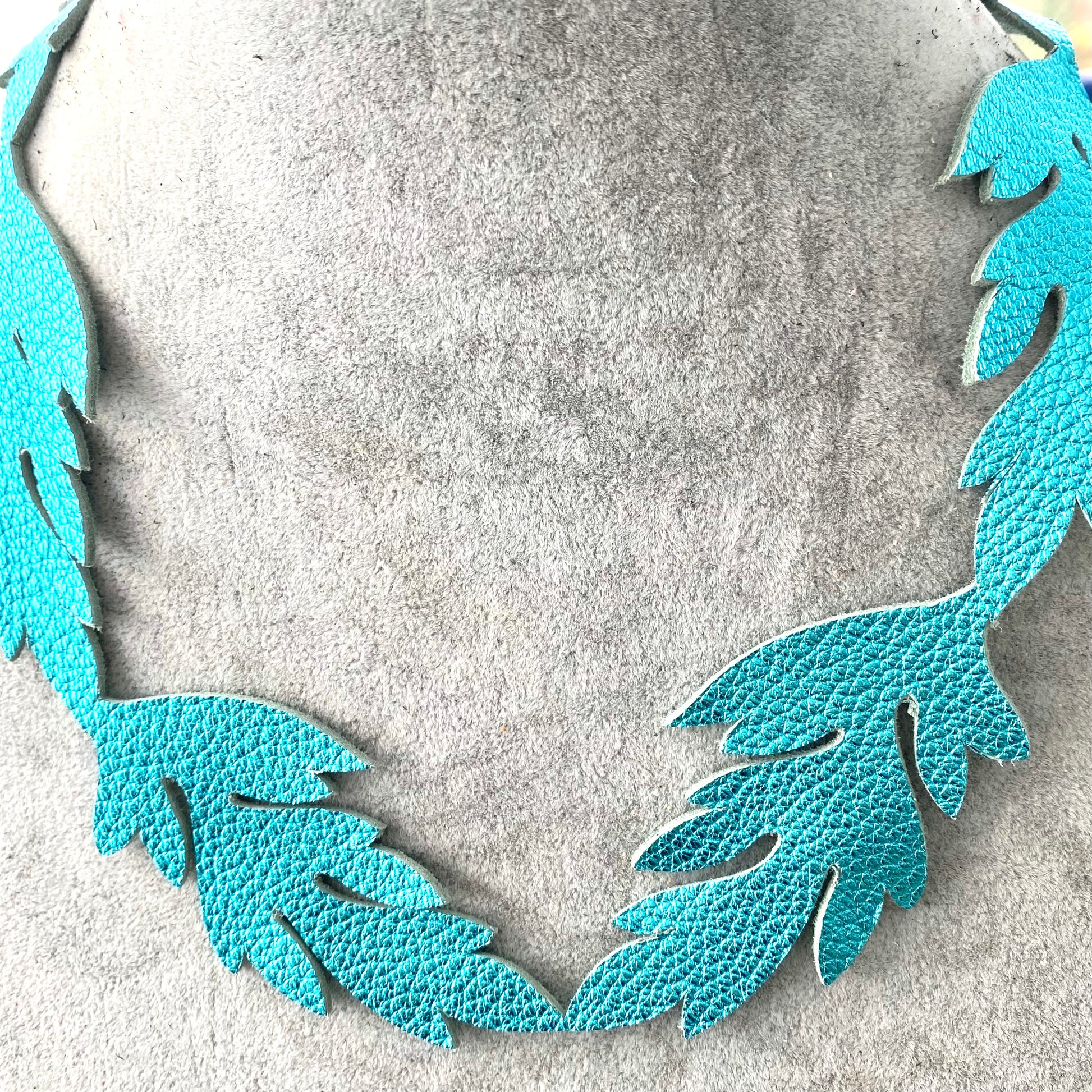 Feel the sophistication of Italian leather with the Evergreen Leaf Leather Necklace.