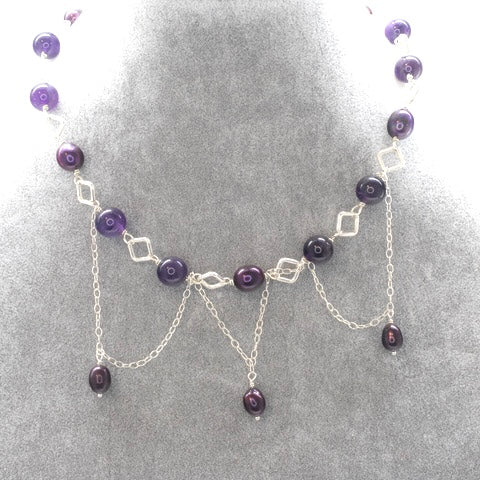 Looking for a way to add a touch of sophistication to your outfit? Look no further than this stunning garnet, amethyst and freshwater pearl necklace.