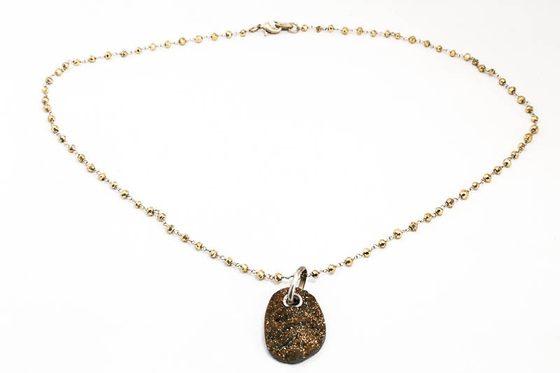 Sparkly yet simple. This natural Druzy pendant coated in gold on a pyrite chain is a knock-out.