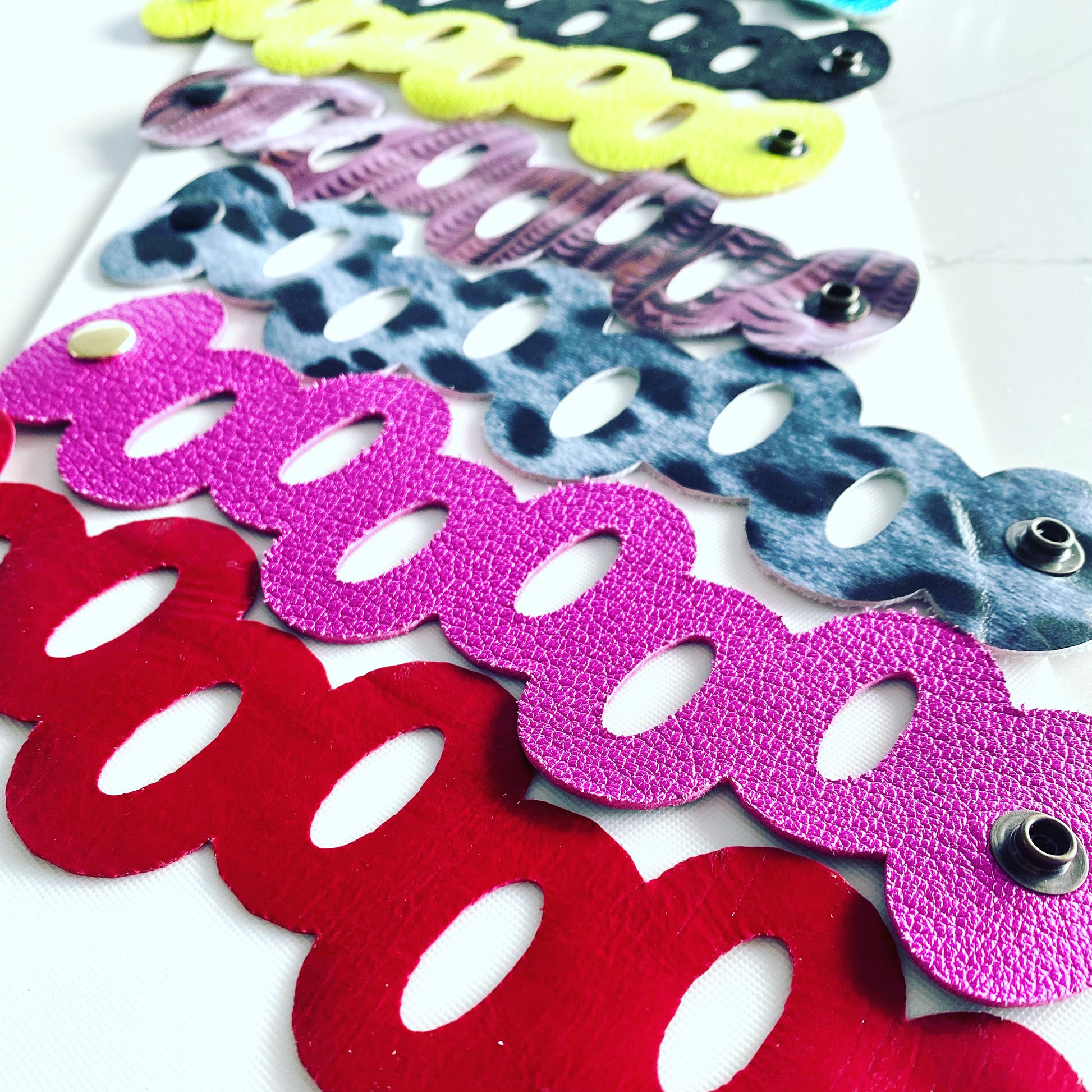 Add a touch of edginess to your look with a leather cuff bracelet.Buy and enjoy! Colors available black, blue, silver, gold, pink, leopard print, red.