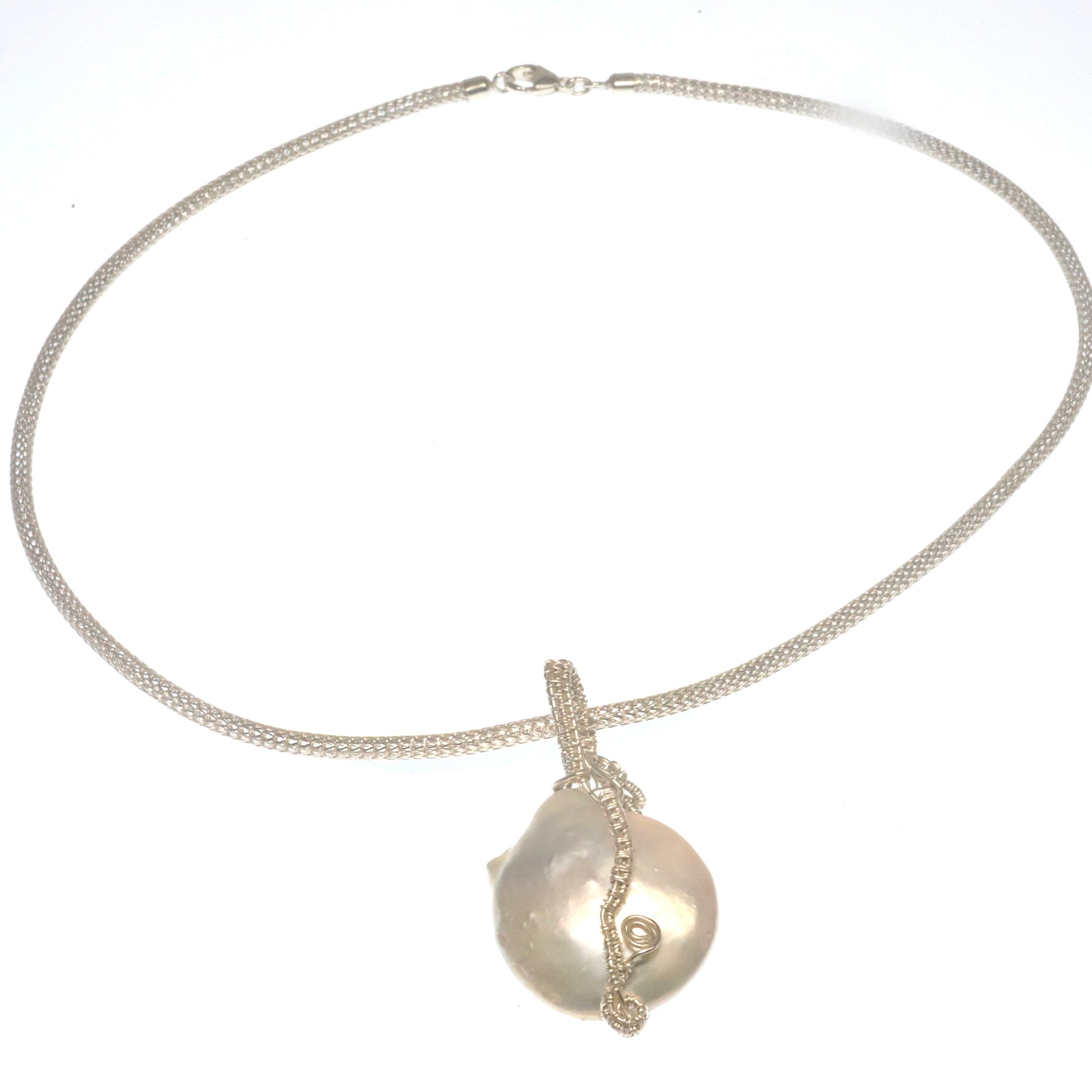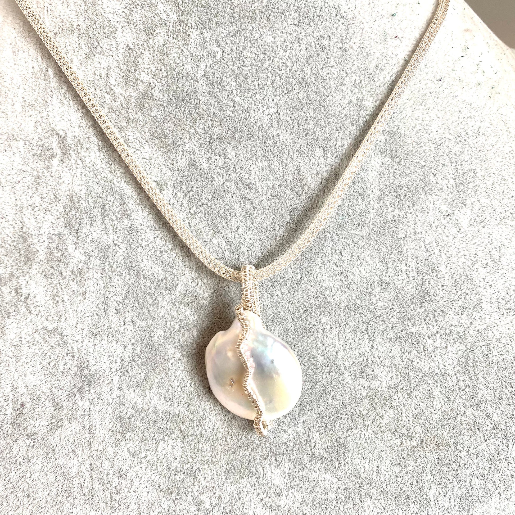 Pearl shopping was such a treat this year with so many new shapes and sizes. This large  freshwater coin pearl had to come home with me so I could create this gorgeous pendant for you.